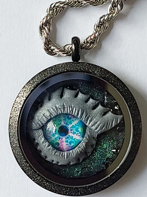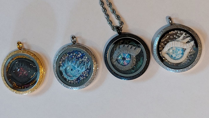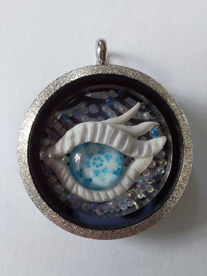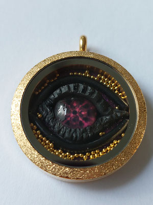 Ich liebe es Augen herzustellen, wobei ich die farbigen und schimmernden Linsen in Fabelwesen integriere : z.B. Drachenaugen, Baumwesen usw.