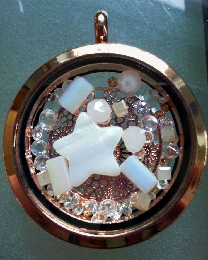 Gerne arbeite ich mit Licht und Farben, diversen Naturmaterialien und den kleinen Schätzen, wie verschiedene Arten von Perlen und Zirkonia Steinen ,die ursprünglich in die Floatys einfließen. (siehe Floaty)